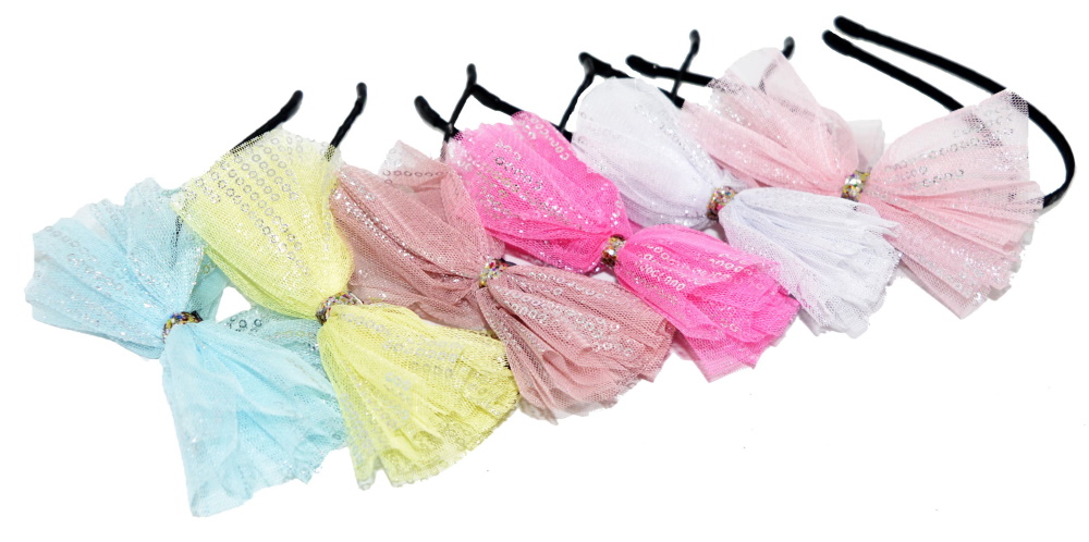 Обідок для волосся фатиновий бантик, ЦІНА ЗА 6ШТ (6 шт)